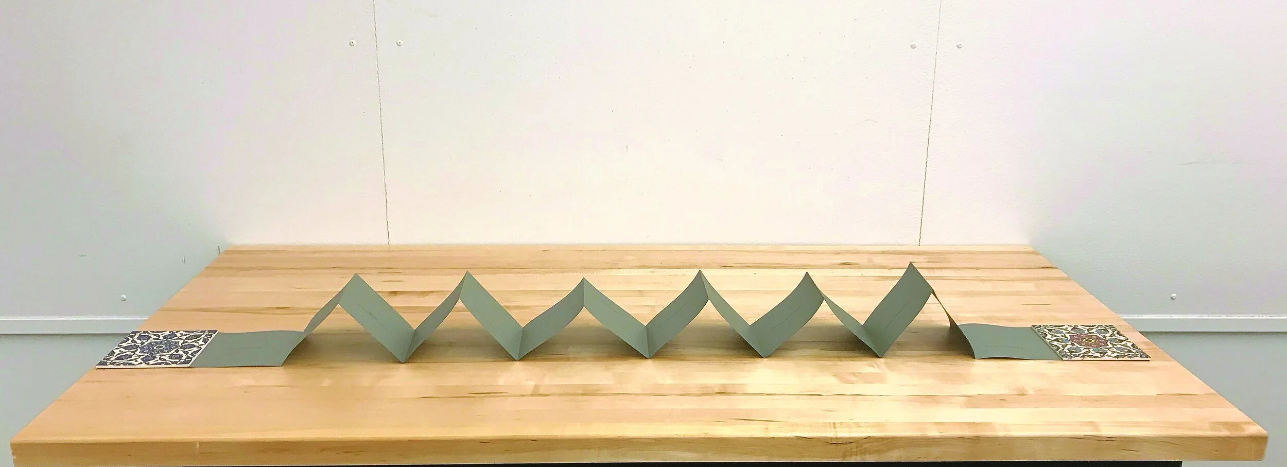 The tiles book is made from Palestinian tiles made in Hebron, one of the main cities for original crafts in Palestine.