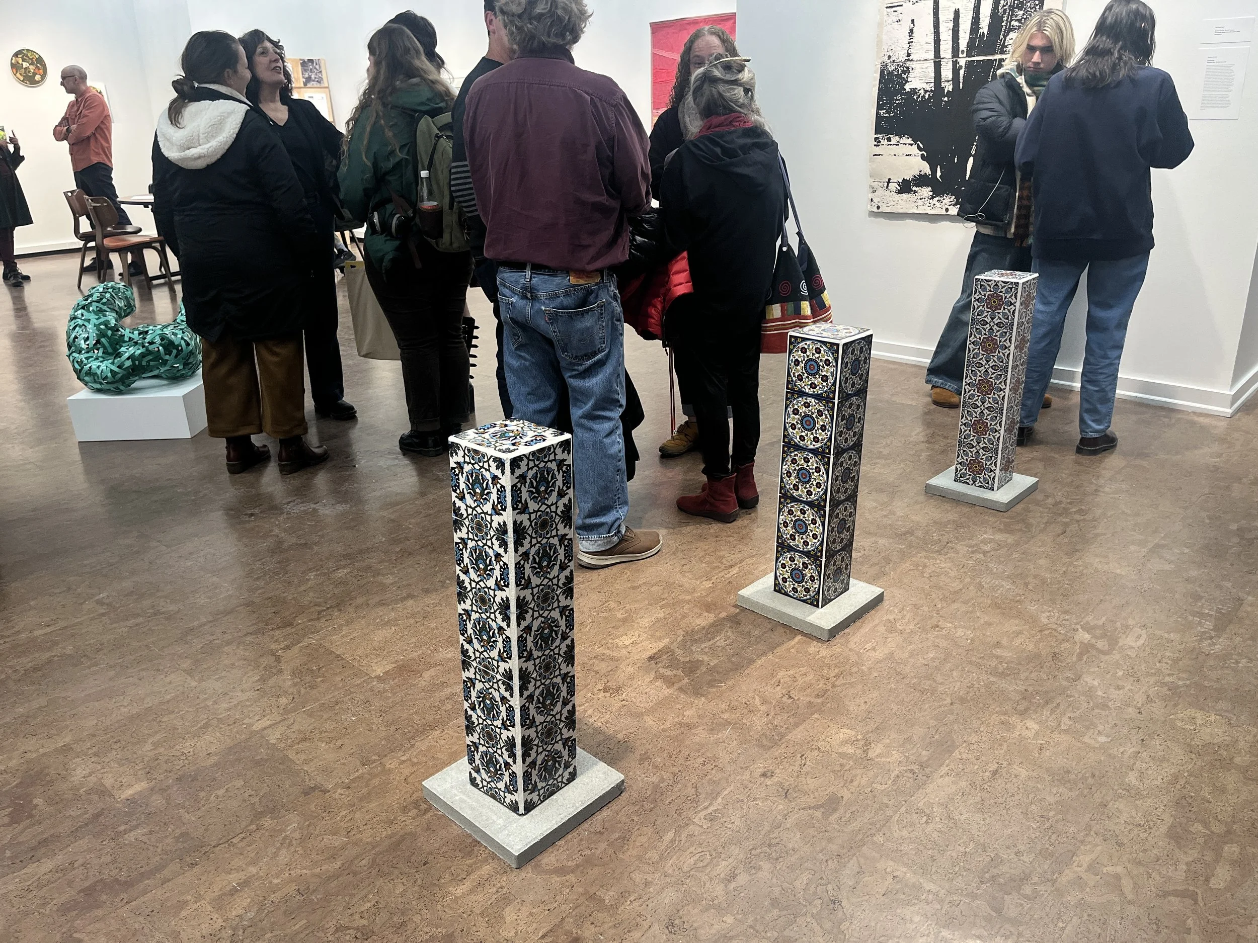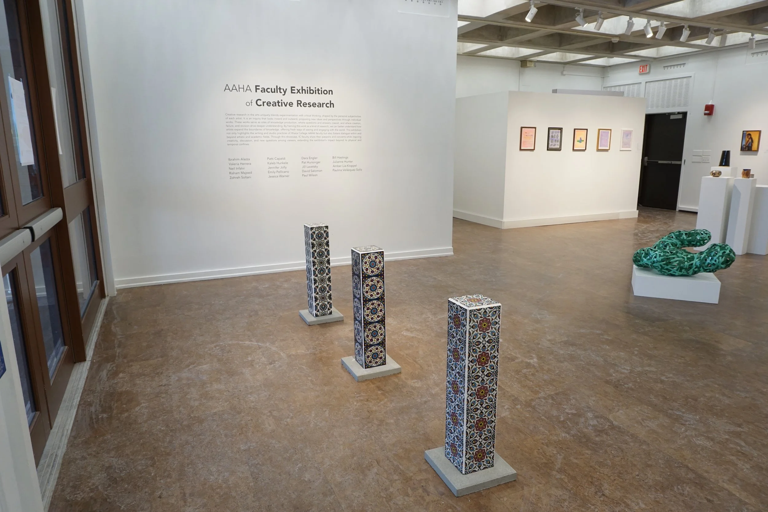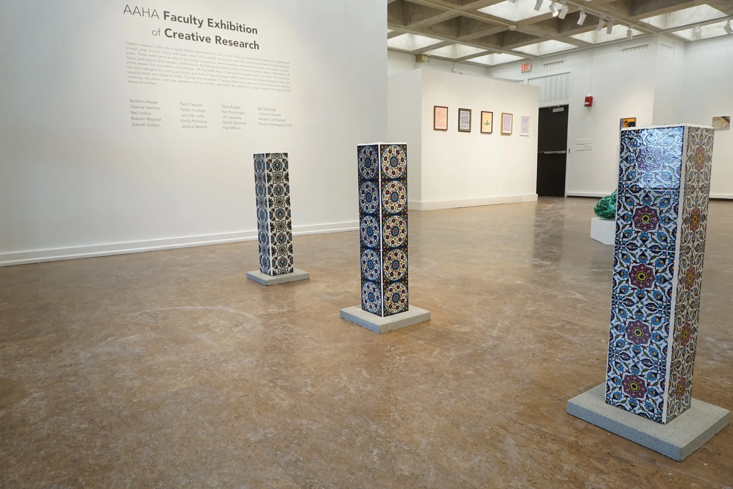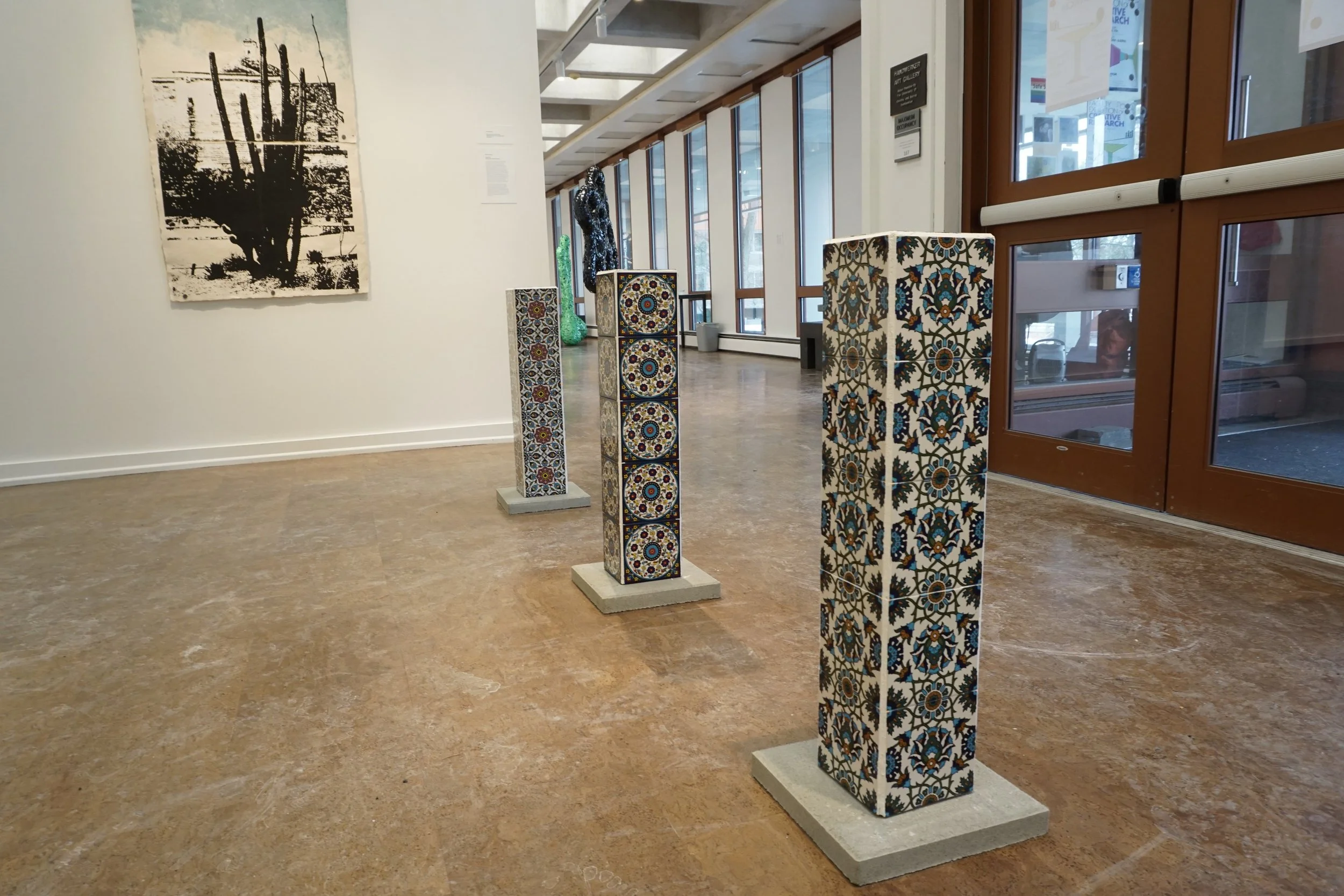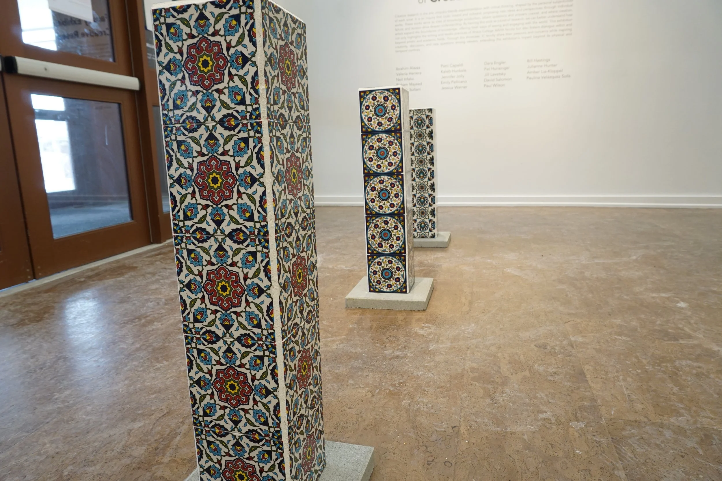 This piece reimagines the checkpoint, a site of pain, humiliation, suffering, and death, as a site of resilience. Creating a checkpoint made of ceramic tiles from the Palestinian city of Hebron (al-Khalil) highlights the resilience of Palestinians and the continuation of life and tradition despite major impediments. The beauty and the aesthetics of the tiles juxtapose the horrors of a checkpoint. The fragility of the ceramic styles opposes the concrete and steel structures that typically makeup checkpoints and is a commentary on the ideologically frail nature of these structures.